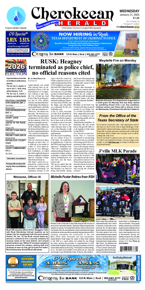 RUSK – Scott Heagney, who up until Friday afternoon had served as the Rusk Police Chief,...