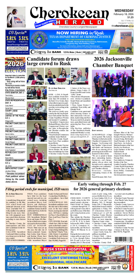 CHEROKEE COUNTY – Early voting for the 2026 general primary elections – which kicked off Tuesday...